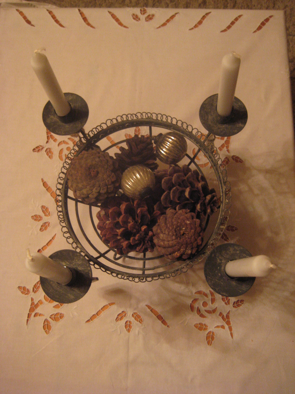 Vi dro heim igjen i dag, så i ettermiddag har eg pynta noen svibler og mange små furuer er komt på plass i Norgesglass og andre glas.